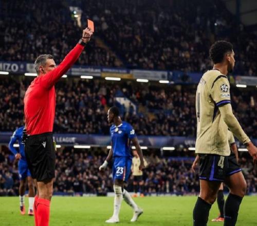 第27分鐘,切爾西在邊路配合撕開巴薩的防線,隨后傳中送到門前,巴薩2名球員解圍失誤,其中孔德不幸打進(jìn)烏龍,讓巴薩0-1落后。半場結(jié)束前,阿勞霍鏟人拿到第2張黃牌被罰離場,巴薩不得不少打1人。