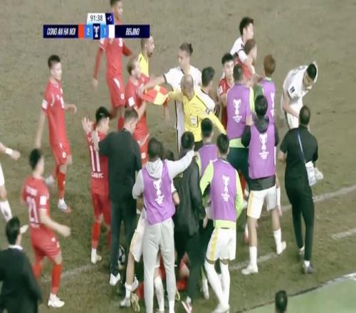 第90分鐘,國安中場失誤,阿圖爾助攻阮廷北,門前推射破門,2:1!進(jìn)球后的阮廷北瘋狂慶祝,堪比奪冠!補(bǔ)時階段,國安心態(tài)失衡,與對手發(fā)生大規(guī)模沖突,王剛將希納摁在地上吃到黃牌,而曹永競因環(huán)抱對手頸部,直接被紅牌罰下!最終比賽結(jié)束,河內(nèi)憑借著下半場的出色表現(xiàn),完成逆襲!