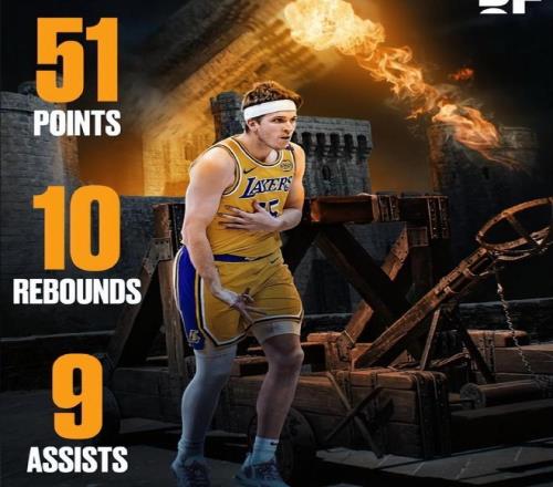 更令人驚嘆的是,在背靠背的兩場比賽中,里夫斯合計轟下92分,創(chuàng)造了湖人隊史自2007年科比后的最高紀錄。開季短短五場比賽,里夫斯便已斬獲171分和50次助攻,成為湖人隊史首位在賽季前五場比賽中達成至少150分50助攻的球員。